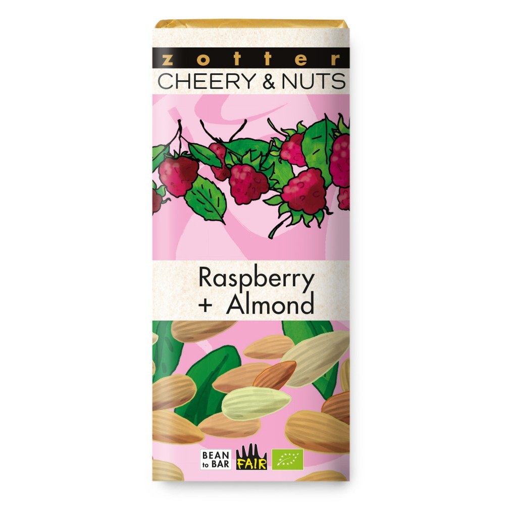 Zotter Bio čokoláda z mandlí a malin, 70 g