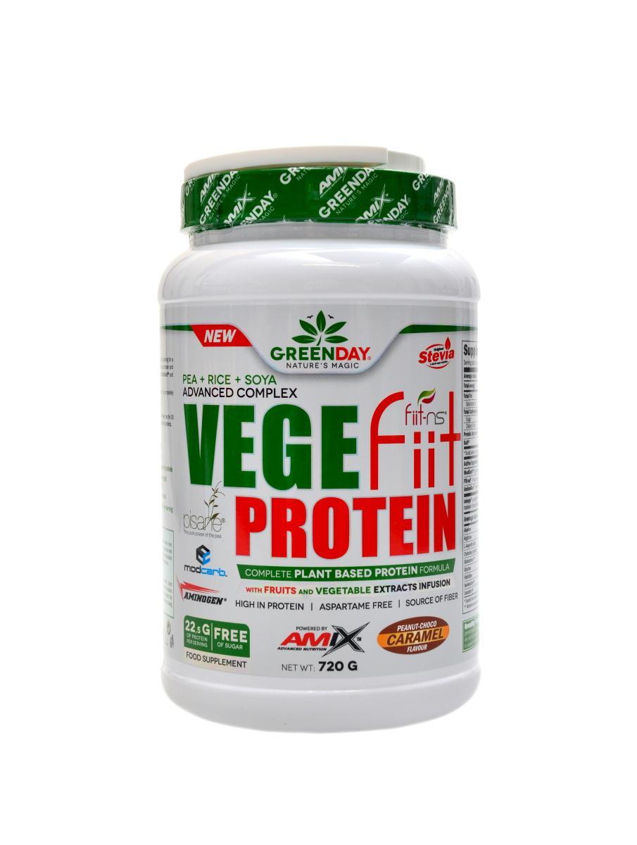 GreenDay® Vegefiit Protein je perfektní řešení pro každého, kdo hledá bílkovinný produkt rostlinného původu. Skládá se z hrachového bílkovinného izolátu Pisane®, rýžového proteinu a sojového proteinu obohacené o proteázové enzymy AminoGen®, vícezrnný matrix ModCarb™ a ovocno-zeleninový komplex...