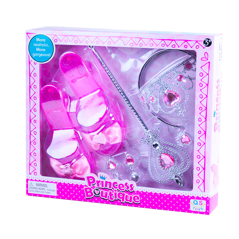 Krásná korunka s náušnicemi a žezlem pro všechny princezny. Perfektně sladěné střevíčky jsou součástí sady. Doplňky jsou zdobeny růžovými prvky. Perfektní sada ke kostýmu! prečítať celé