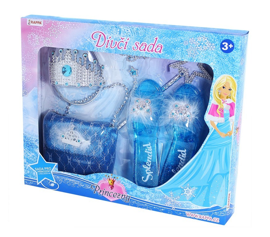 Tento špeciálny set obsahuje topáničky, kabelku, čelenku, korunku, náušnice a prútik, teda všetky prvky, ktoré patria k princeznovskému kostýmu. Veľkosť topáničiek cca 19 cm je prispôsobená tak, aby dokonale padli na nožičky vášho dieťaťa, vďaka čomu sa bude cítiť ako skutočná princezná. Sadu odporúčame dievčatkám od 3 rokov, čo zaručuje bezpečné a pohodlné používanie.