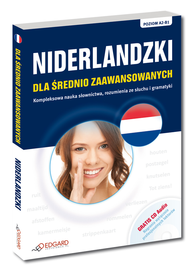 Kurs przeznaczony jest dla tych, którzy opanowali podstawy języka niderlandzkiego i chcą kontynuować naukę na poziomie średnio zaawansowanym (A2-B1). Książka (200 stron) opiera się na unikalnej metodzie zintegrowanej nauki. Dzięki niej szybko i skutecznie opanujesz wszystkie kompetencje językowe. Kurs pozwoli ci jednocześnie doskonalić praktyczną znajomość języka, poszerzać zasób słownictwa, rozwijać umiejętności rozumienia tekstów pisanych, rozumienia ze słuchu i samodzielnego komponowania wypowiedzi pisemnych. W 14 rozdziałach tematycznych znajdziesz: krótkie teksty, gramatykę w pigułce, dialogi sytuacyjne, porcję słówek, liczne ćwiczenia leksykalne i gramatyczne, a także interesujące informacje o kulturze Holandii. Dla ułatwienia nauki samoukom, na końcu każdego rozdziału umieszczono praktyczny słowniczek. Książkę zamyka rozdział podsumowujący z 14 tekstami, poświęcony w szczególności zadaniom na rozumienie tekstu czytanego i rozumienie ze słuchu. Dodatkowo dołączono do kursu CD Audio, która zawiera nagrania w wykonaniu profesjonalnych lektorów. Znajdują się na niej teksty otwierające każdy z rozdziałów oraz ciekawostki na temat Holandii oraz wszystkie teksty z rozdziału podsumowującego. Słuchanie nagrań ułatwia naukę współczesnego języka niderlandzkiego, w tym jego potocznej odmiany i płynne komunikowanie się.