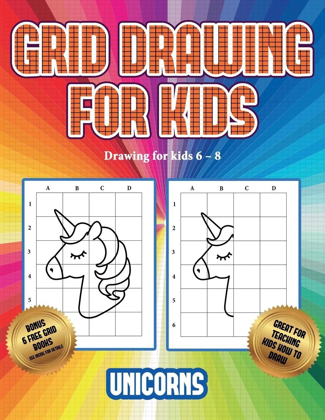 Drawing for kids 6 - 8 (Grid drawing for kids - Unicorns): This book teaches kids how to draw using grids (anglicky)