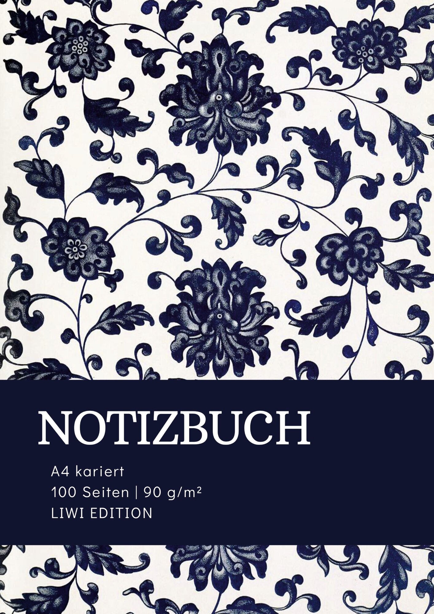 Notizbuch A4 kariert - 100 Seiten Soft Cover floral blau - FSC Papier (německy)