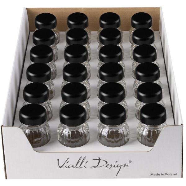 Sada 24ks kořenek v kartonovém stojanu:uzávěr v černé barvě,kořenky jsou vybaveny sterilním plastovým sítkem, které umožňuje snadné dávkování koření,hodí se na všechny druhy koření – od sušených bylinek, jako je bazalka a oregano, až po drobná semínka, mleté koření až po klasické koření, sůl a...