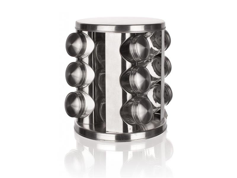 Vybavte svou kuchyň praktickým pomocníkem, ze kterého se může stát také pěkný designový doplněk. Sadu Banquet Akcent 28TG005 tvoří 12 ks skleněných kořenek o objemu 80 ml, které jsou doplněny o nerezové víčko. Lze je naplnit libovolným kořením dle vlastních preferencí. Kořenky jsou umístěny v otočném nerezovém stojanu, který jednoduše umístíte do skříňky nebo na kuchyňskou linku a všechno koření pro dochucení pokrmů tak budete mít vždy po ruce. Skleněné nádoby bez víčka lze mýt v myčce nádobí. 12dílná sada kořenek na otočném stojanu z nerezi, skleněné kořenky s nerezovým víčkem, objem kořenky 80 ml, výška stojanu 19 cm, průměr 17 cm.