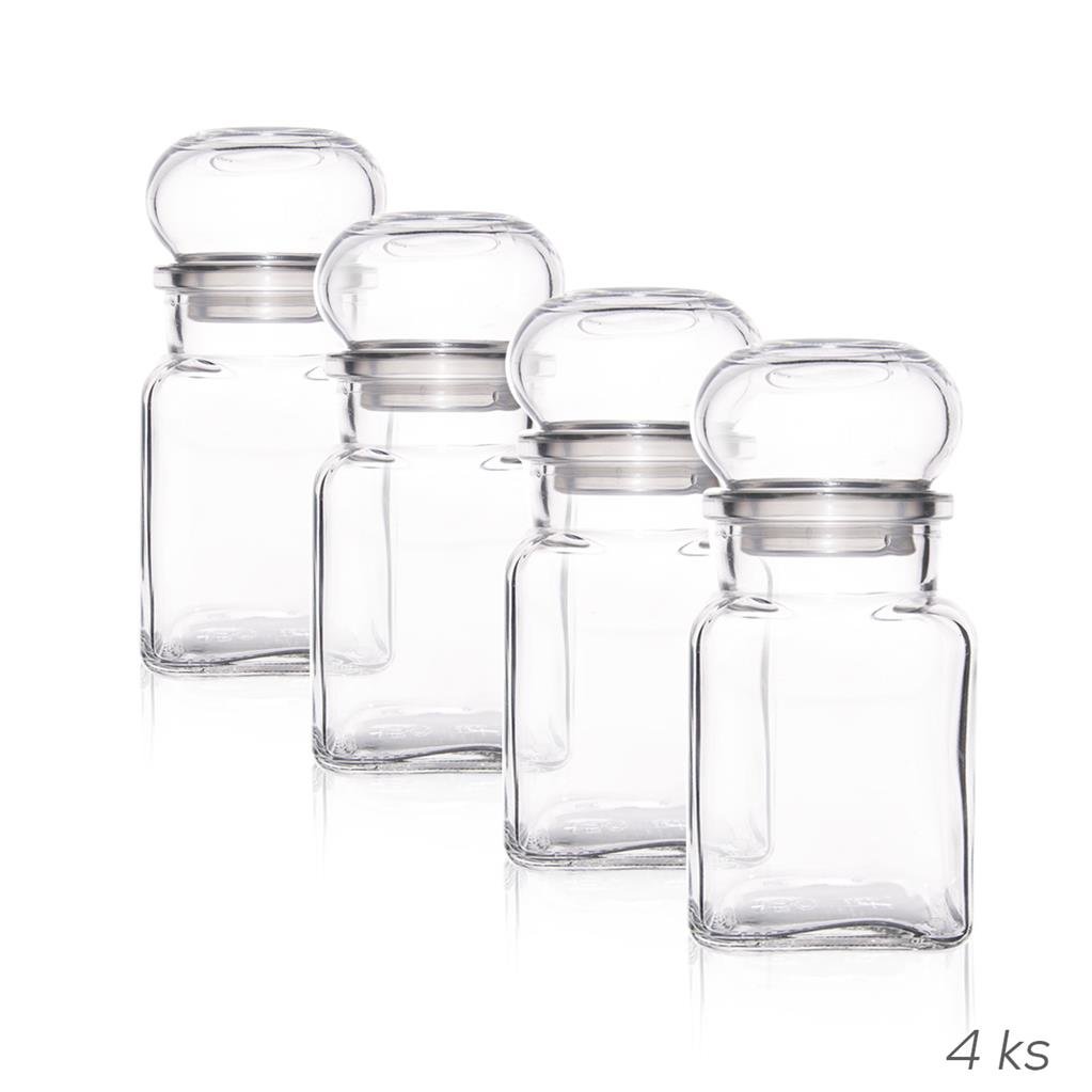 Kořenka s víčkem se silikonovým těsněním. Přehledně uložíte koření, neztratí chuť ani aroma. Sada 4 ks. Materiál: sklo. Rozměry: objem 150 ml, 5,5x5,5x12 cm. prečítať celé