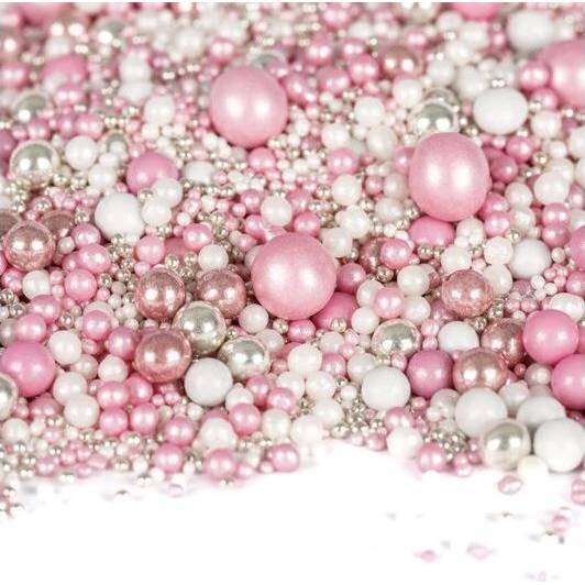 Cukrové a čokoládové perličky růžový mix. Balení 90 g. prečítať celé