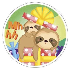 Jedlý papír s veselými motivy lenochoda s dárky je vhodný na ozdobu dortu pro holčičky i kluky. Průměr 21 cm. prečítať celé