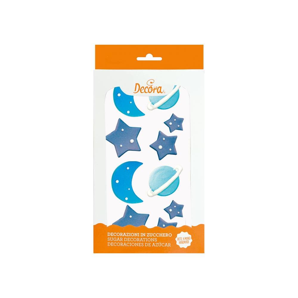 Cukrové zdobení na dort vesmír hvězdy a měsíc 10ks - Decora