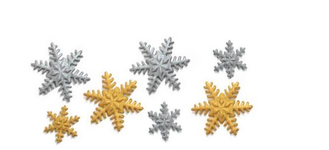 Cukrová dekorace ve tvaru zlatých a stříbrných sněhových vloček. prečítať celé