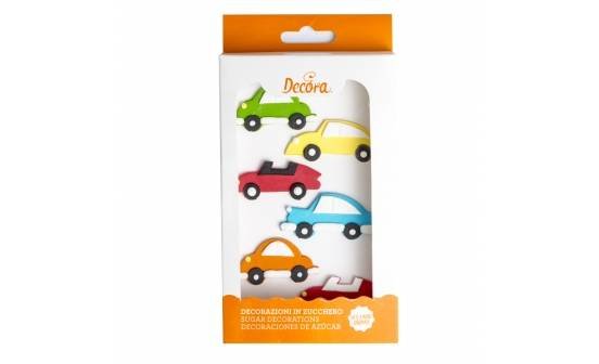 Cukrová dekorace na dort barevná auta 6ks - Decora