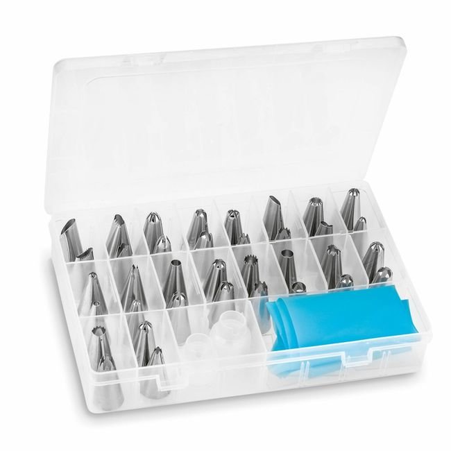 Sada obsahuje 36 rôznych špičiek, ktoré pokryjú všetky bežné i špeciálne techniky zdobenia. Súčasťou balenia sú aj 2 adaptéry, ktoré umožňujú jednoduché nasadenie špičiek na vrecúška, a niekoľko jednorazových cukrárskych vrecúšok pre hygienické a praktické použitie. Táto výbava je nevyhnutná pre tvorbu dokonalých ozdôb, ornamentov i presných detailov.