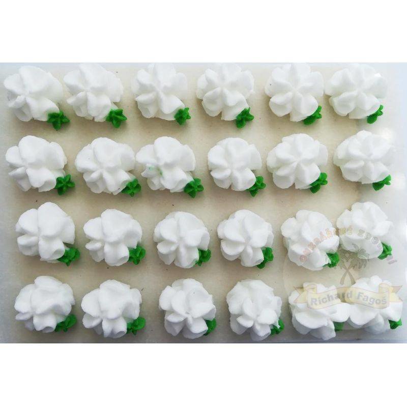 Cukrové květy bílé na platíčku 24ks - Fagos