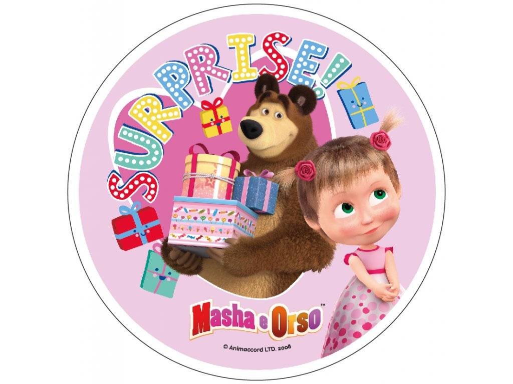 Jedlý papír s pohádkovými motivy – Máša a medvěd srdce. Průměr 21 cm. prečítať celé