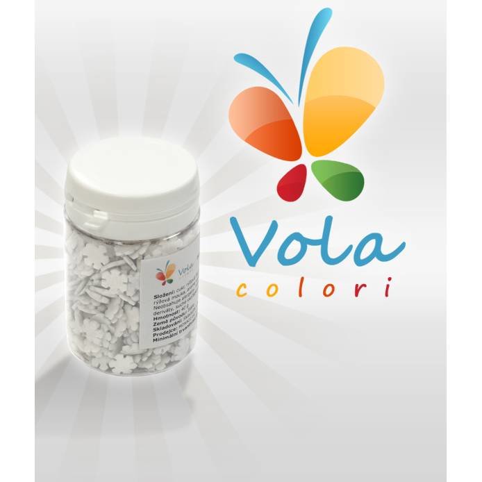 Cukrové sypání ve tvaru sněhových vloček v bílé barvě. prečítať celé