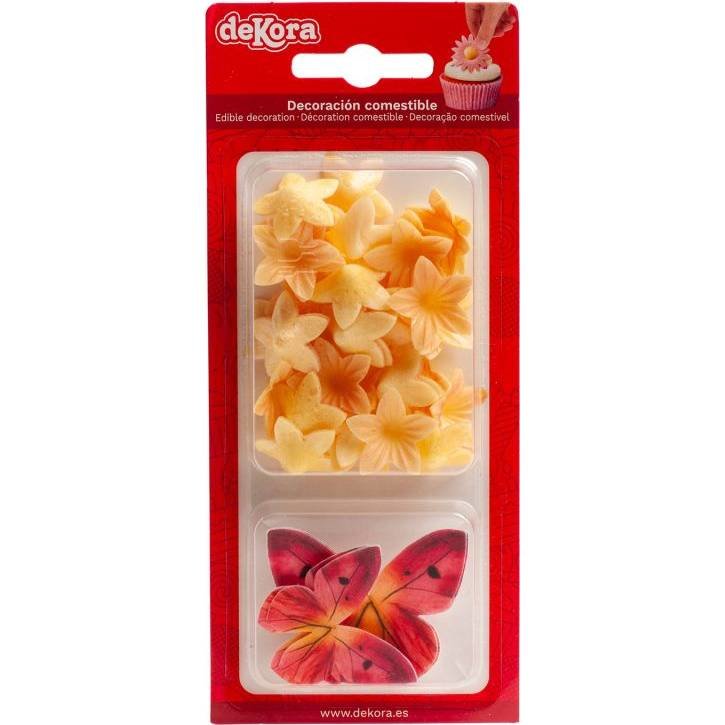 Tento set dekorácií v podobe jemných motýľov a kvetov ľahko doladí vaše pečivo k dokonalosti. Sú vhodné pre všetky príležitosti - narodeninové oslavy, svadby, rodinné stretnutia alebo len ako radostný detail k popoludňajšej káve. Jedlé dekorácie sú jednoduché na použitie a prinášajú okamžitý efekt, ktorý zaujme na prvý pohľad.