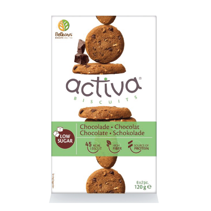 Activa Protein sušenky s vlákninou a sníženým obsahem cukru s belgickou čokoládou 120g