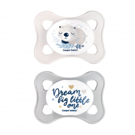 Canpol babies Set symetrických silikonových MINI dudlíků 0-2m SLEEPY KOALA šedý