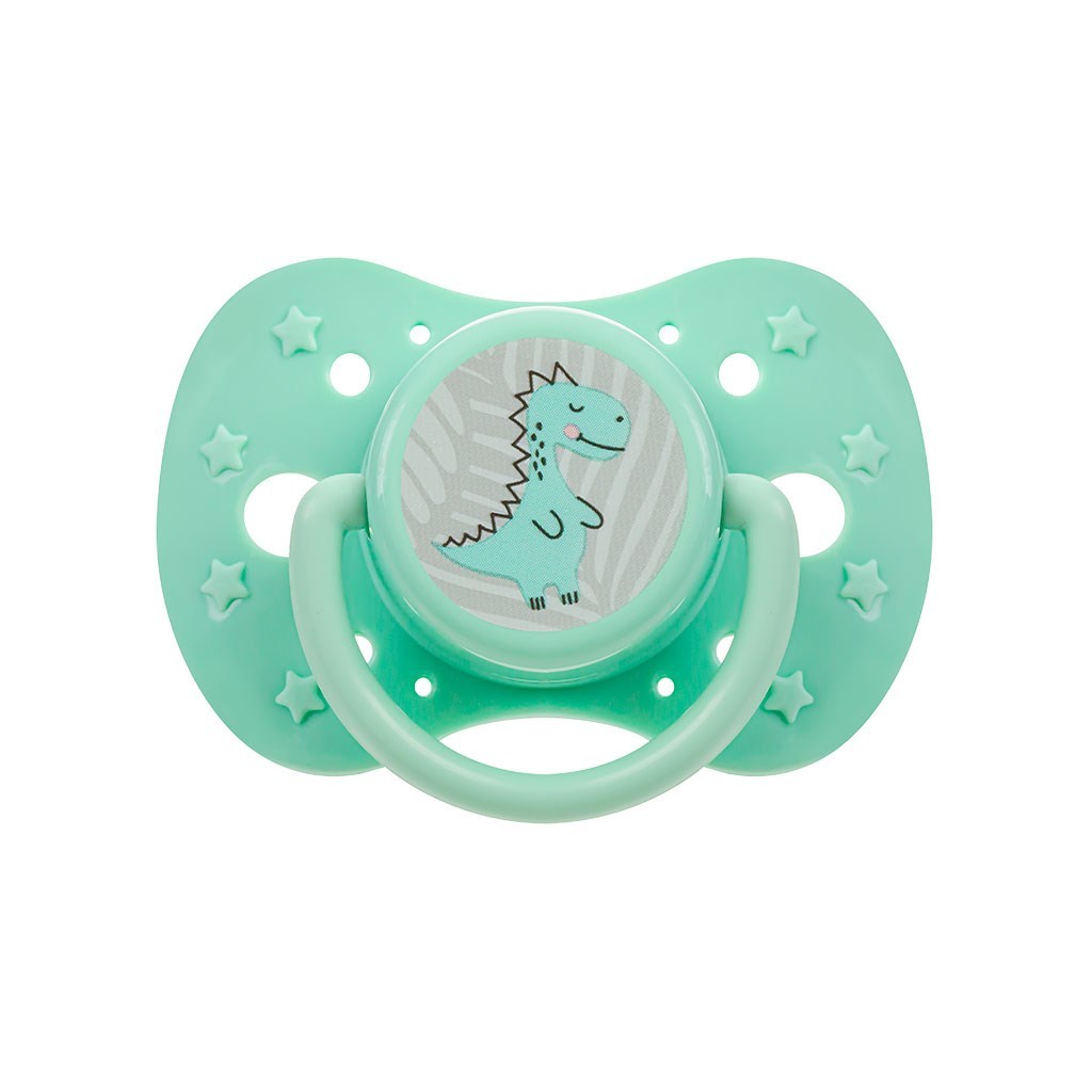 Uklidňující silikonový dudlík 6m+ Akuku dino - velikost 6-18m