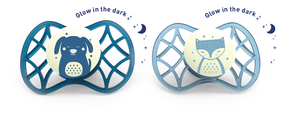 Ortodontické dudlíky Explorer 6m+ 2ks svítící ve tmě, Male