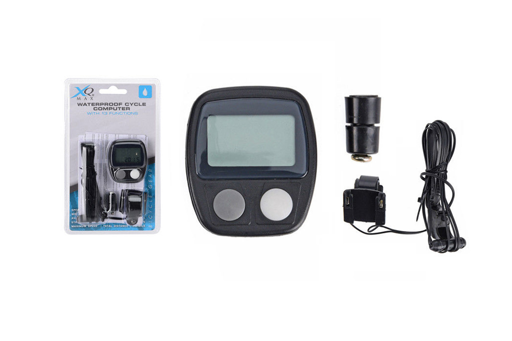 Digitální tachometr s různými funkcemi: registr rychlosti, délka jízdy v pohybu, automatický start/stop, nastavení obvodu kola, indikace hodin, výpočet ujeté vzdálenosti, indikace kilometrů/mil. Funguje s 1x knoflíkovou baterií AG13, která je součástí balení. V blistru.
