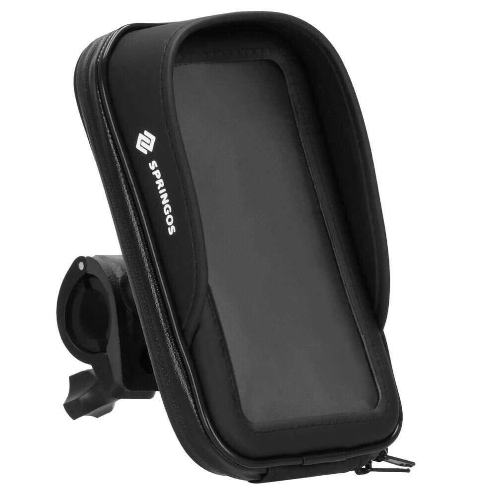 Praktická taška na řídítka s průhledným dotykovým pouzdrem na telefon a sluneční clonou pro lepší čitelnost displeje. Voděodolný materiál chrání obsah, kapsa na zip pojme všechny nezbytnosti. Nastavitelný držák zajišťuje stabilní uchycení, vyztužené dno zvyšuje pevnost. Nechybí ani výstup na sluchátka pro pohodlné poslechy během jízdy. Rozměry: 17x10x5 cm (dxšxv), průhled na telefon: 13,5x6,5 cm.