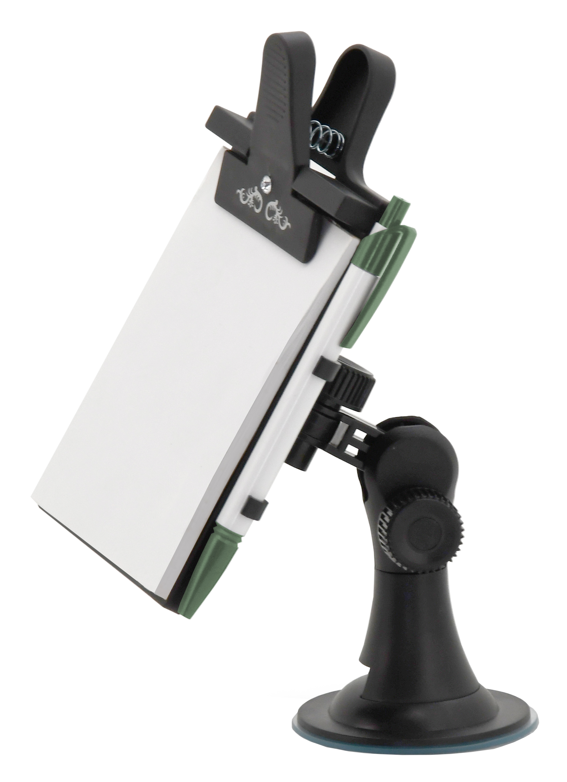 Praktický držák poznámkového bloku pro upevnění na sklo, či na palubní desku.