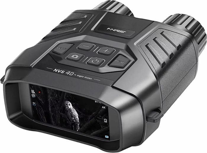 NVS-40 infračervený dalekohled pro noční vidění a za slabého osvětlení. Zařízení je vybaveno 6-ti násobným digitálním zoomem, což umožňuje pozorování na vzdálenost až 300 m v úplné tmě. Rozlišení videa až 4K a možnost pořizování fotografií v kvalitě až 36 MP.
