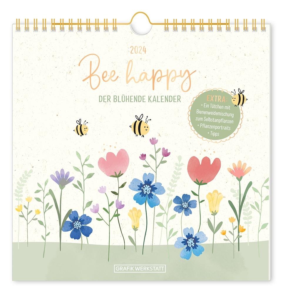 Wandkalender quadratisch 2024 Bee happy (německy)