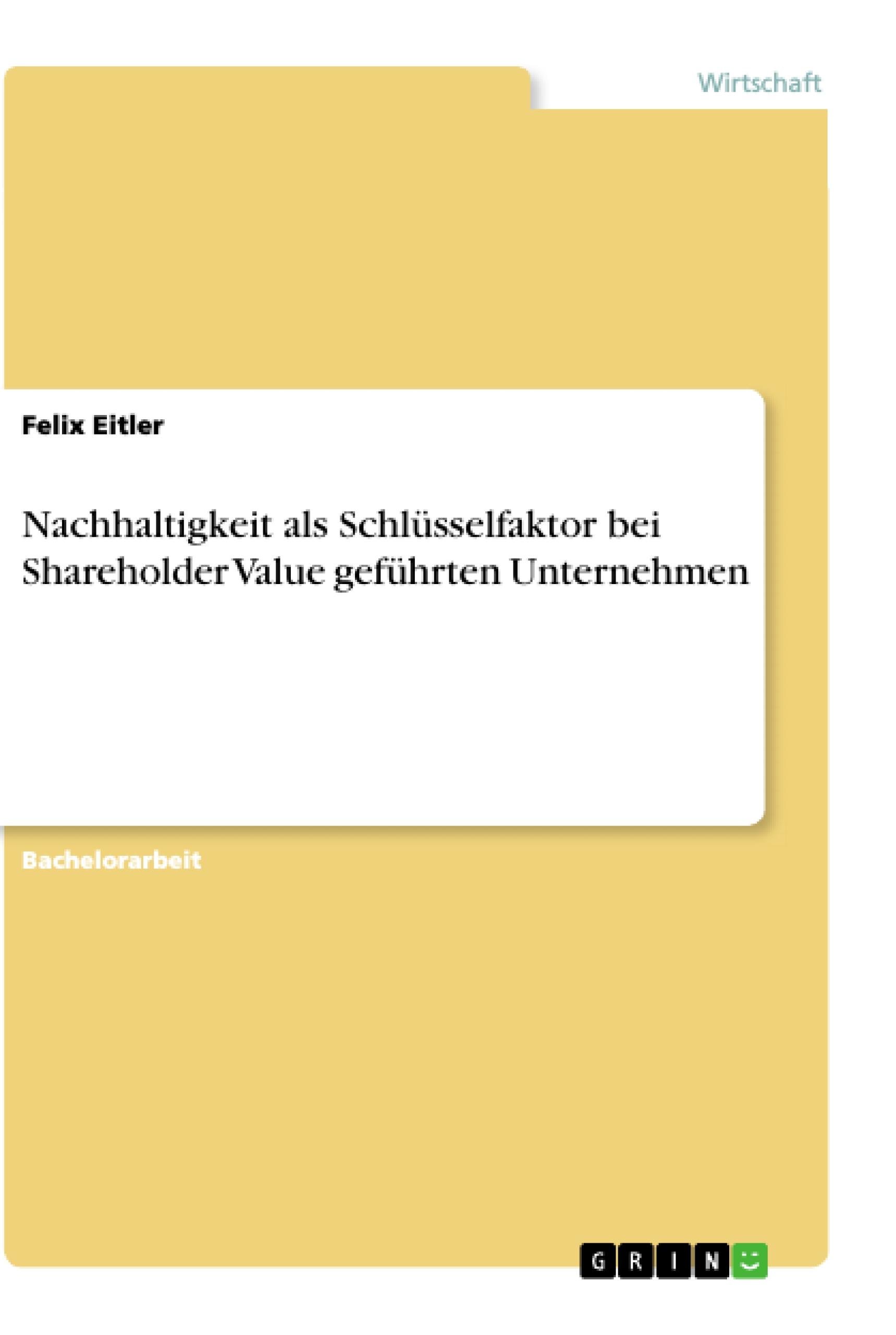 Nachhaltigkeit als Schlüsselfaktor bei Shareholder Value geführten Unternehmen (německy)