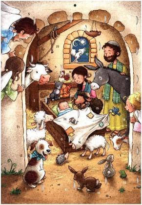 gestalteten Magneten, die sich hinter den Türchen verbergen, können Kinder die Weihnachtsgeschichte