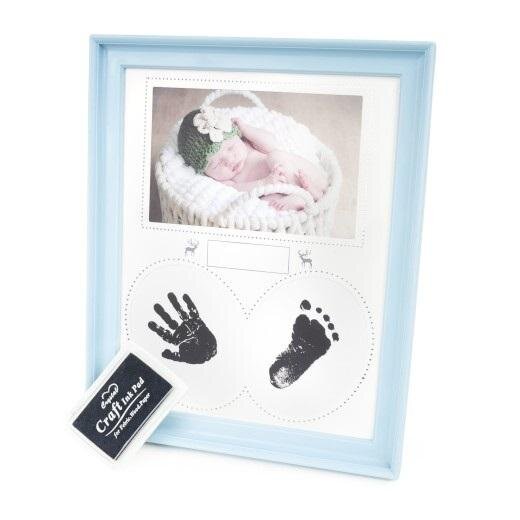 plastikowa ramka na zdjęcia, rozmiar ramki 22,2 x 27,4 cm, szerokość listwy 2 cm, do postawienia lub powieszenia, zawiera tusz do wykonania odcisku dłoni lub stopy dziecka prečítať celé