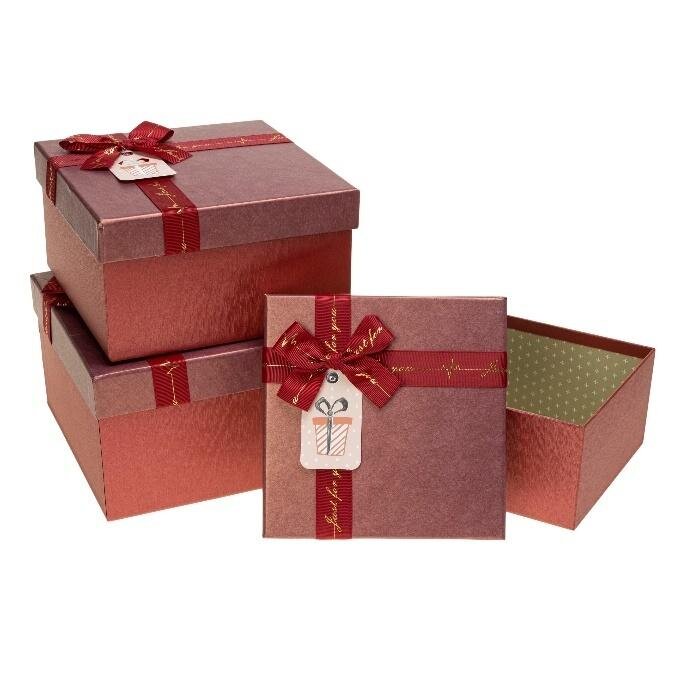Zestaw pudełek prezentowych z kokardą 3szt czerwonyWymiary pudełek:S: 15x15x7cm M: 18x18x9cmL: 22x22x910cm prečítať celé