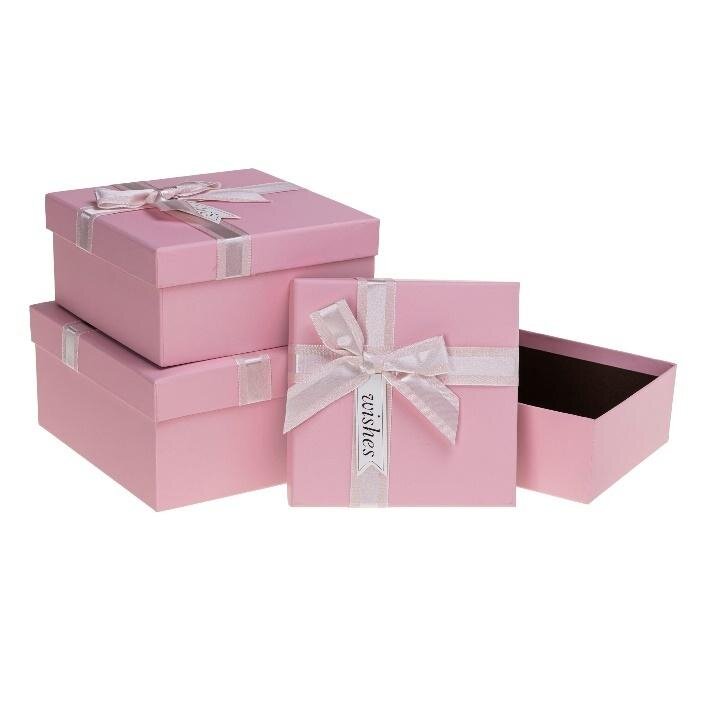 Zestaw pudełek prezentowych z kokardą 3szt różowyWymiary pudełek:S: 15x15x6.5cmM: 17x17x8cmL: 19x19x9,5cm prečítať celé