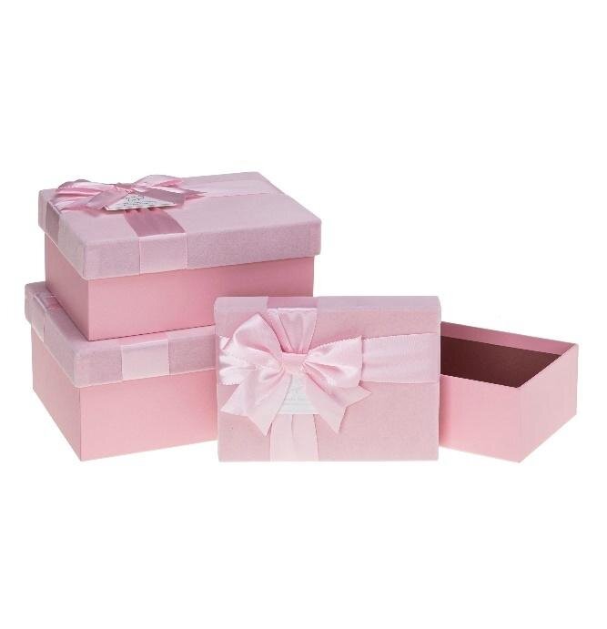 Pudełko prezentowe z kokardą 3szt różowy ROZETTE