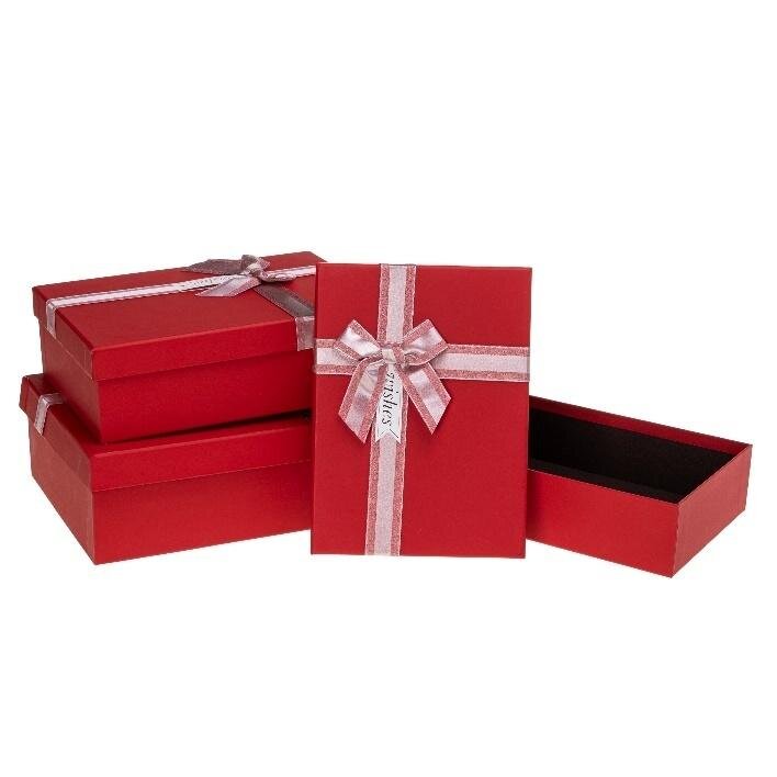 Pudełko prezentowe z kokardą 3szt czerwony ROZETTE