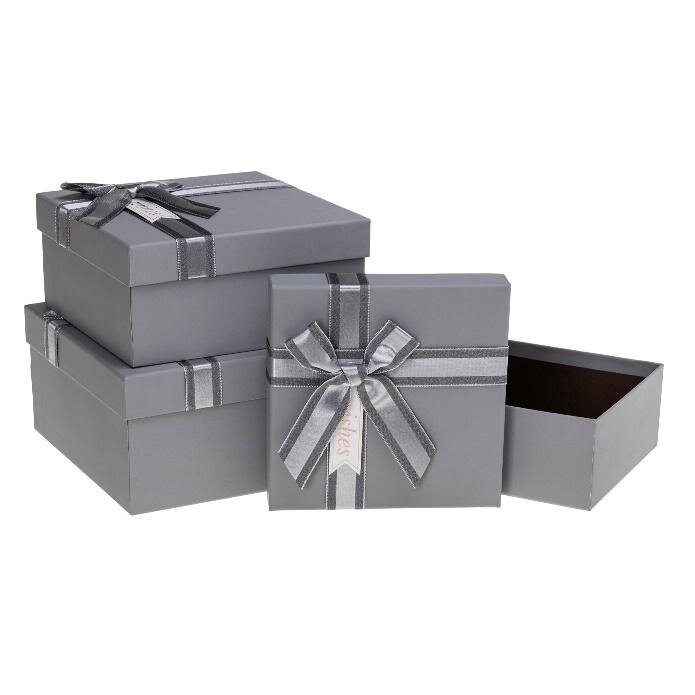 Pudełko prezentowe z kokardą 3szt srebrny ROZETTEWymiary pudelek:S: 15x15x6.5cm M: 17x17x8cmL: 19x19x9,5cm prečítať celé