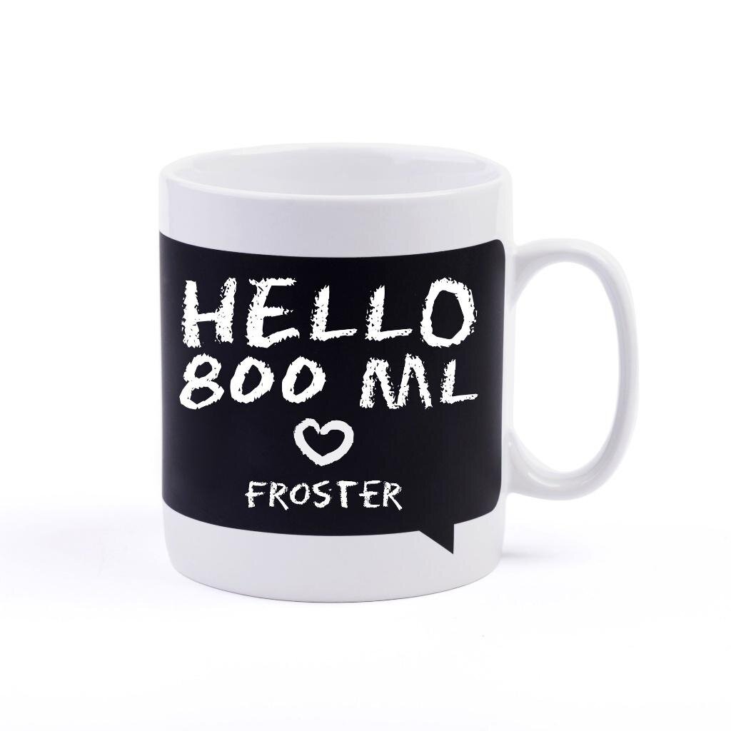 Do zestawu dołączono: kreda.Gigantyczny gadżet, robiący gigantyczne wrażenie.Nadruk wokół całego produktu.Materiał: ceramika. Wymiary: 12,5 cm (wysokość), 800 ml (pojemność). Nadaje się do kontaktu z żywnością.Produkt bezpieczny - posiada świadectwo sanepidu.Odpowiednie nawodnienie organizmu...