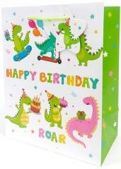 Torebka ozdobna matowa 18x23x10cm Dinozaury