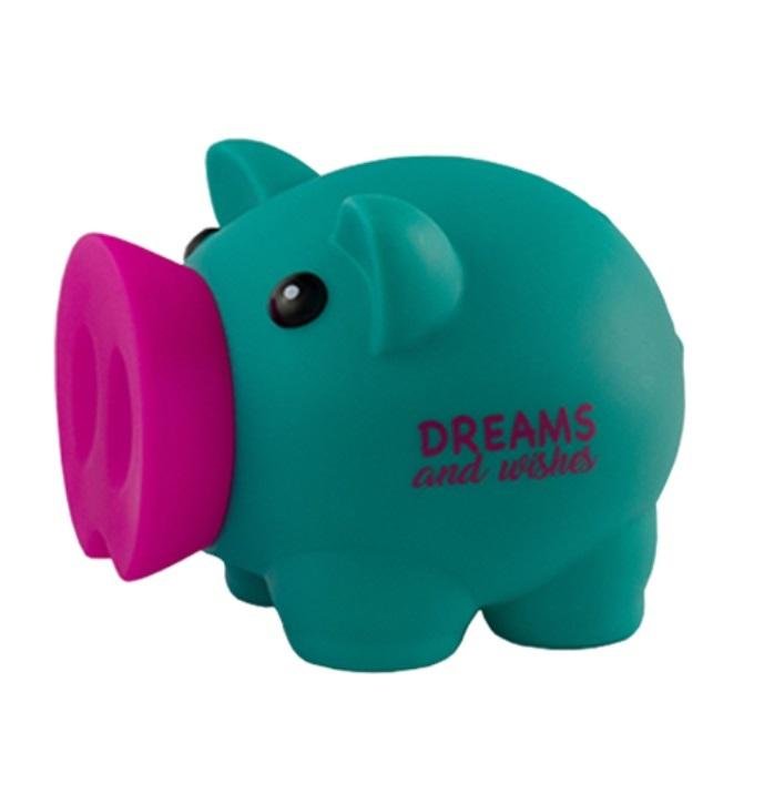 Wymiary: dług. 12,5 cm, szer. 9,2 cm, wys. 9,2,cm.Korpus wykonany ze sztywnego, a ryjek z miękkiego tworzywa sztucznego.Otwierana przez wyjęcie ryjka. Zapakowana w jednostkowe przezroczyste pudełko z polichlorku winylu. Produkt spełnia normę EN 71 określającą europejskie wymogi bezpieczeństwa dla...