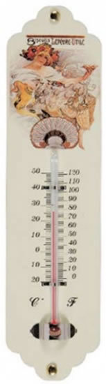 Teploměr s motivem Alfonse Muchy balený v papírové krabičce. prečítať celé