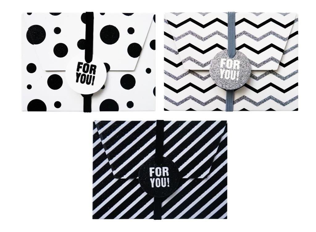 Pudełka na karty podarunkowe biało-czarne 3szt