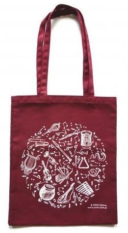 Torba płócienna z instrumentami w kolorze bordowym. Posiada długie uszy. prečítať celé