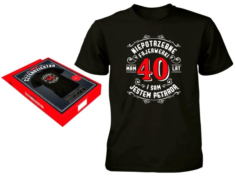 Fajny pomysł na prezent z okazji 40-stych urodzin. Zabawna koszulka z wysoko gatunkowej bawełny z kolorowym nadrukiem. Koszulka jest zapakowana w estetyczne, kolorowe pudełko.Rozmiar XL. prečítať celé