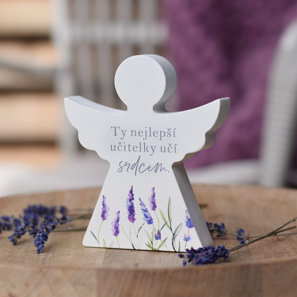 Dřevěný anděl pro paní učitelku s levandulí