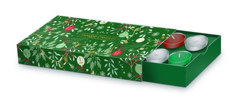 Ideální dárek pro milovníky intimní atmosféry, které umí vykouzlit jen čajové svíčky. Obsahuje jich hned 10, a to od vůní: Twinkling Lights, Tree Farm Festival, Letters to Santa, Christmas Eve Cocoa, Candlelit Cabin, Christmas Magic, Snow in Love, Snowflake Cookie, Christmas Cookie a Christmas Eve. Obsahuje také svícínek na čajovou svíčku z čirého skla. Čajové svíčky se zapalují ve více kusech ve svícnech.