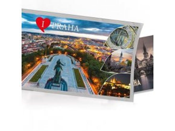 Pohlednice ve tvaru obálky z tvrdého papíru s dárkem uvnitř. Rozměry: 18,5x11 cm. Obsah: magnetka Praha prečítať celé