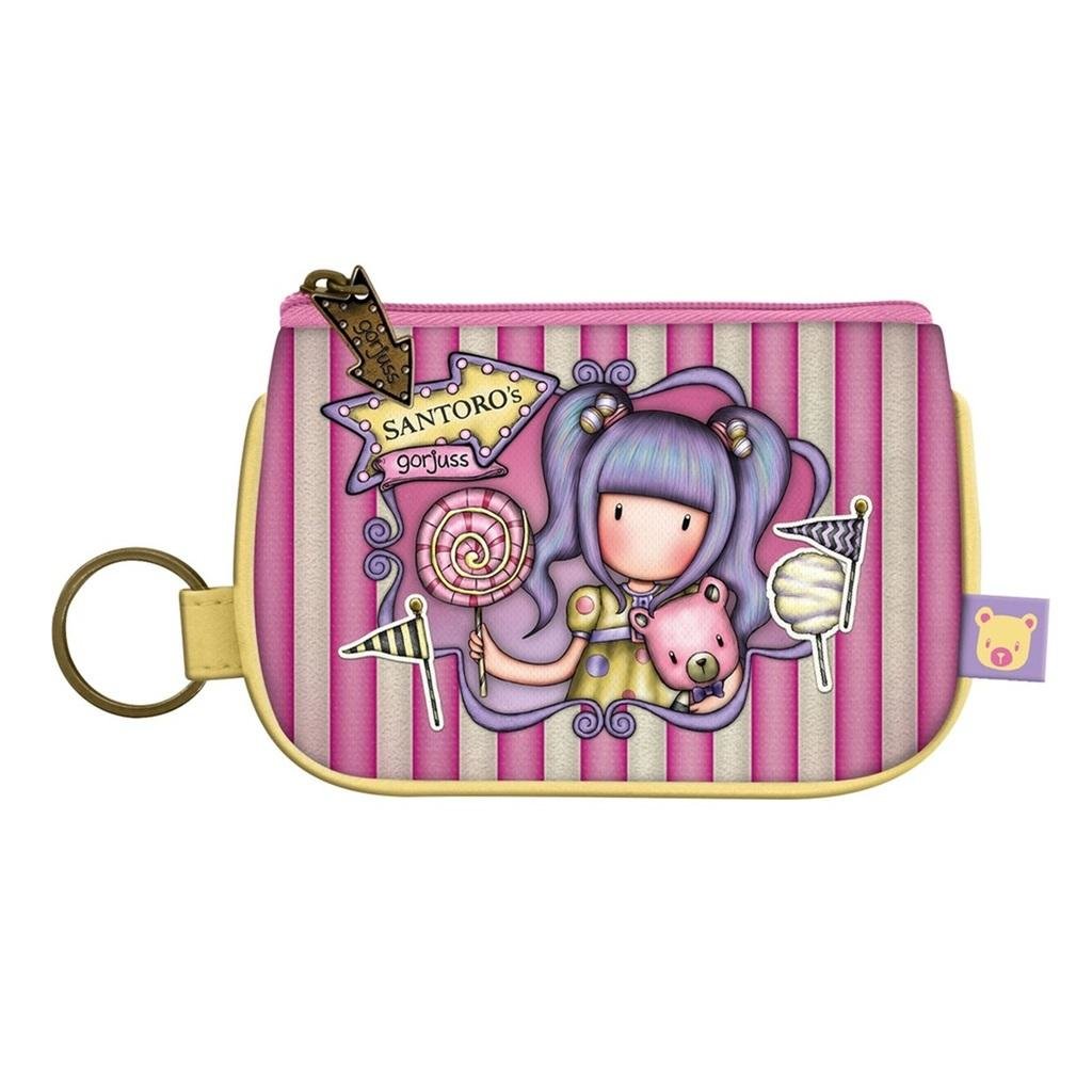 Portmonetka na Suwak, Brelok - Gorjuss - First PrizeFantastyczna seria First Prize ozdobiona jest grafiką dziewczynki Gorjuss ze słodkim misiem, na tle w kolorze liliowym, wzbogacona akcesoriami z lunaparku: balonami, popcornem, lizakami, cukrową watą.Mała portmonetka, saszetka z suwakiem oraz...