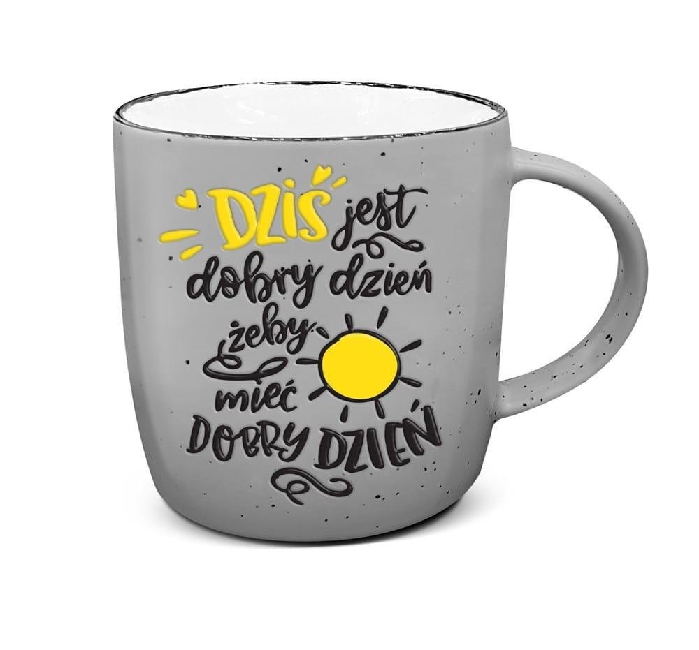 Kubek ceramiczny z tłoczoną ilustracją oraz tekstem. Cały kubek oraz uchwyt w kolorze z delikatnymi tłoczonymi plamkami. Zapakowane w biały kartonik bez koloru, z kodem EAN. Pojemność: 350 ml. prečítať celé