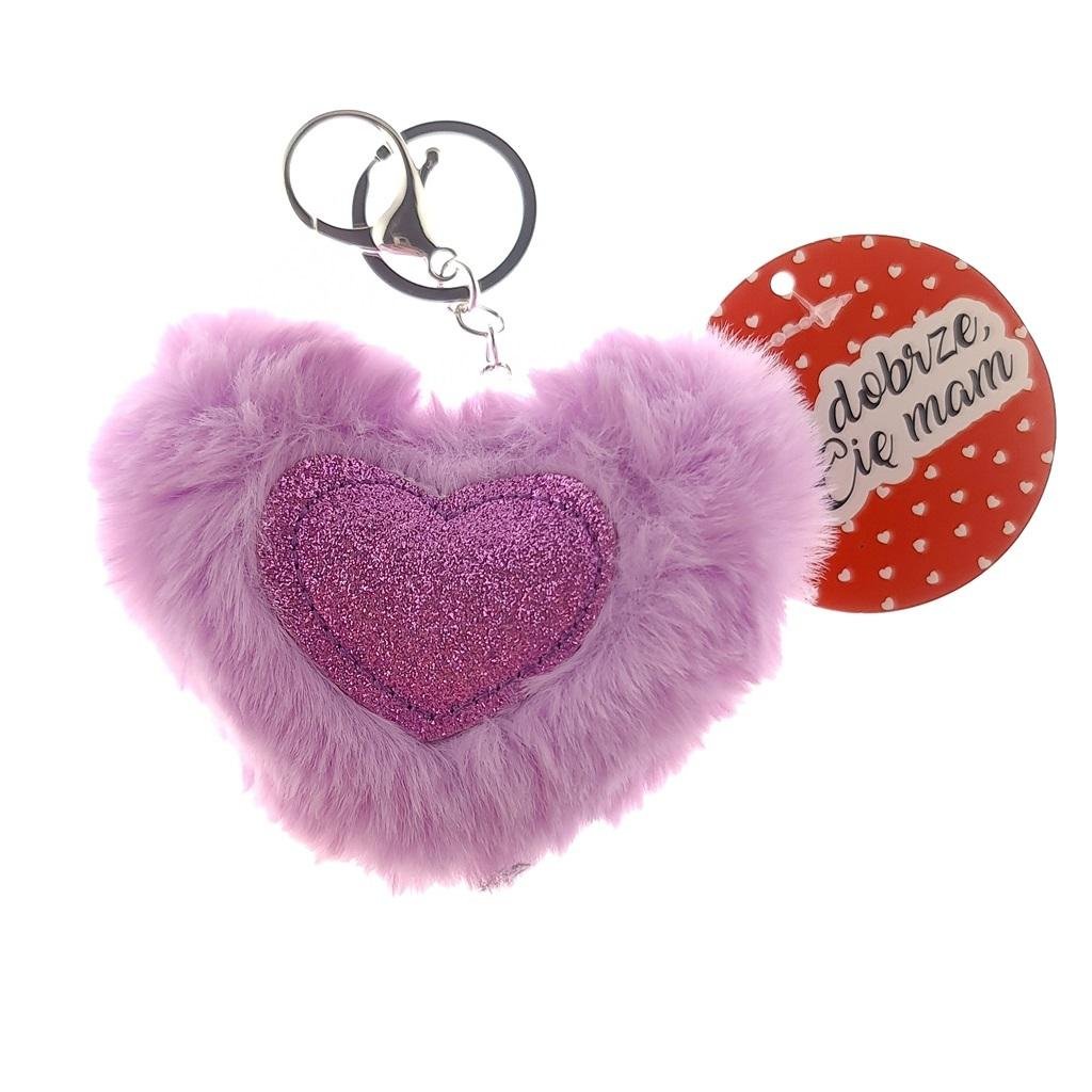 Brelok: pompon serce brokat liliowy.Wymiary: 8,0 x 8,0 x 3,8 cm.Materiał: sztuczne futro, tworzywo sztuczne PU, metal. prečítať celé